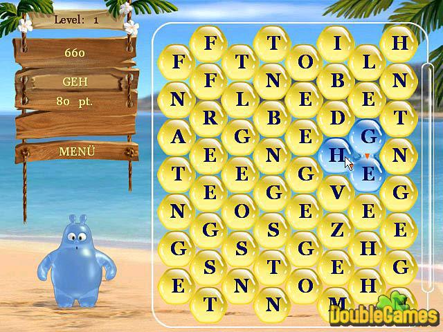 Eine neue brillante Version eines Wörterspiels mit dem berühmten Helden – Aquatic! Das ist das Spiel für Spaß am Spielen mit Wörtern. Benutzen Sie die Blasenbuchstaben um Wörter für das nette tanzende Männchen zu bilden! Keine Schießerei, keine Gewalt, nur ein kleiner netter Aquatic, der Hilfe braucht! Vermissen Sie den heißen Sommer und träumen von Hawaii? Versuchen Sie dieses Spiel! Werden Sie Meister des Wörterbaues!