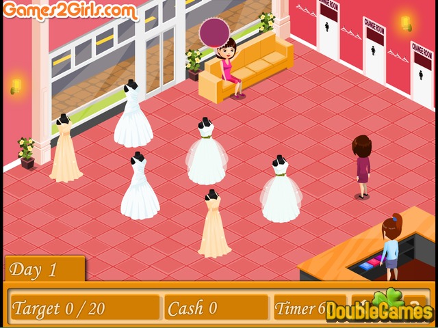 Hier kommt ein weiteres Online-Gegen-die-Zeit-Modespiel für Mädchen „Bride's Shopping“! Stell dir vor, deine eigene Braut- Boutique eröffnet zu haben. Alle wissen, dass sie einer der besten ist, weil du da die schönsten Brautkleider aller Zeiten verkaufst! Natürlich wächst dein kleines Unternehmen ständig und Nachfrage steigt von Tag zu Tag! Jede Braut glücklich zu machen ist das, wofür du hauptsächlich arbeitest, so Tag für Tag leiste dein Bestes, um diese Mission zu erfüllen. Begrüße deine Kunden, bediene sie und achte darauf, dass jeder zufrieden ist. Viel Glück!