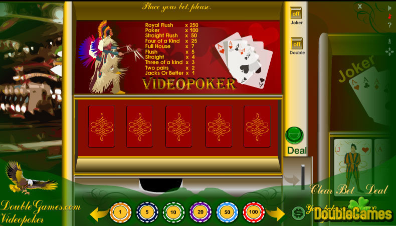 Der Eindruck, der Classic Videopoker macht, ist eindrucksvoll. Sie sehen einen Saal, der zur Ruhe und guten Laune stimmt. Der Spielfeld wurde originell ausgestaltet, und die Karten haben ein spezielles Thema. Behalten Sie sie im Laufe des Spiels, es wird Ihre Meisterschaft erhöhen und die Gewinnchancen verbessern. Classic Videopoker bringt ebenso emotionale Begeisterung wie alle Kartenspiele. Es ist einfach Classic Videopoker zu spielen um so mehr, als Sie es zu Hause machen können. Seines Vorzug ist, dass Sie es allein spielen können. Wenn Sie in Laufe des Spiels die Karten nahmen, können Sie sie noch ein Mal verteilen um die Chancen des Gewinns zu steigern. Wenn sie Ihre Meinung ändern, klicken Sie die Karten um sie zu verteilen. Wenn Sie es spielen, genießen Sie Graphik, Musik, haben Ihren Spaß und gewinnen! Vorbereiten Sie sich zur grossen Lustigkeit und Gewinn!