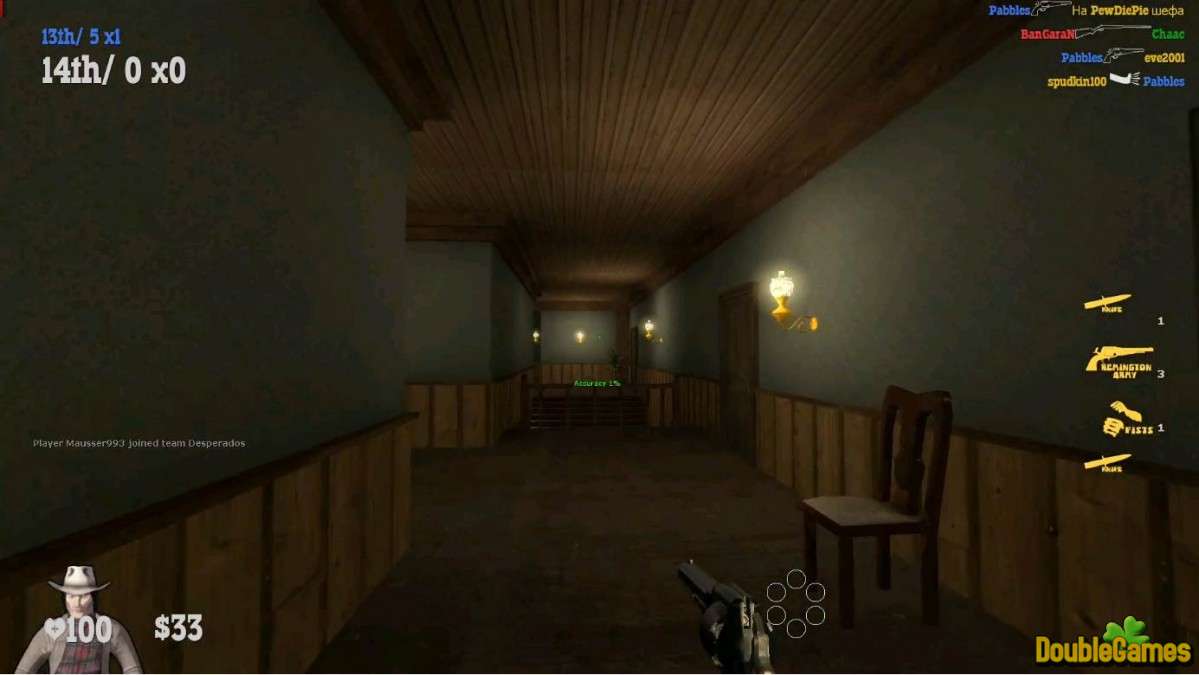Fistful of Frags wird von einem Indie-Entwickler ausschließlich als Source-Engine-Mod hergestellt. Die Idee war, Multiplayer-FPS in eine westliche Umgebung zu bringen und Spaß damit zu haben. Das Spiel hat auch einen Einzelspielermodus. Dort kannst du Missionen und Herausforderungen erfüllen, um die Spielmechanik für die spätere Verwendung in PvP-Events zu beherrschen. Im Mehrspielermodus können Sie anständige Bots hinzufügen, um auch offline zu üben. Die Anpassung geht so weit, dass Sie sich für Primär- und Sekundärwaffen entscheiden und zwischen verfügbaren Fähigkeiten für Ihren Charakter wählen. Die Waffen werden in ihrem historisch authentischen Aussehen präsentiert. Sie können Colt Peacemaker, Smith Carbine und Sharps Gewehr bekommen, um nur einige zu nennen. Einige davon sind nur in bezahlten Kisten erhältlich. Jüngste Änderungen machten es unmöglich, die Waffe eines anderen zu plündern, nachdem er sie abgeschossen hatte. Der gefallene Spieler wird es auch nach dem Respawn nicht finden. Der einzige Weg ist, es jedes Mal zu kaufen. Dieses System ist im Teamplay-Modus (objektbasierte Runden), im Shootout (klassisches Deathmatch) und in anderen Multiplayer-Modi wie Grand Elimination (Battle Royale), Break Bad (mit benutzerdefinierten Regeln) sowie Team Elimination und Versus implementiert sind selbsterklärend nach ihren Titeln zu urteilen. Da Fistful of Frags kostenlos gespielt werden kann, hindert Sie nichts daran, es selbst auszuprobieren.