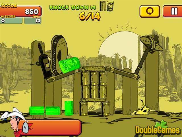 Spielen Sie die Rolle von Lucky Luke, die beste Revolverheld im Westen! Gewinnen Sie Hunderte von Missionen in diesem Spiel basiert auf Physik und Kettenreaktionen an. Schießt schneller als dein Schatten und alle Ziele stürzen. Aber vorsichtig Cowboy sein, Ihre Munition ist begrenzt! Genauigkeit und Logik werden deine besten Freunde sein. Verwenden Sie Ihre besten Ziel-Fähigkeiten und lösen Sie jede Herausforderung!