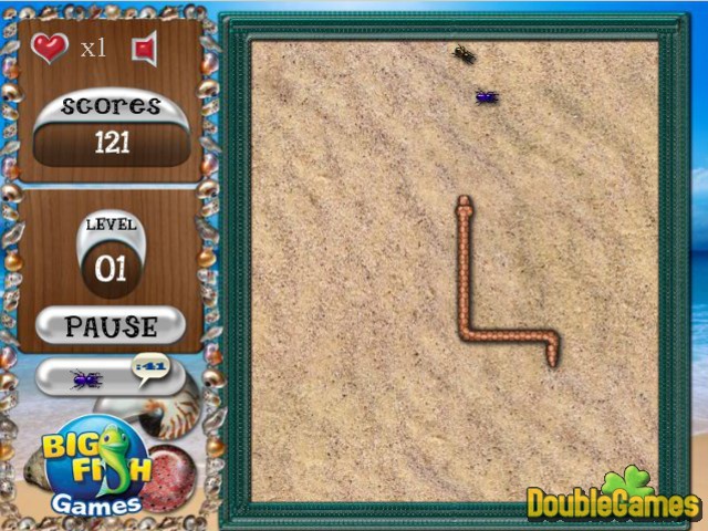 Es gibt kaum eine Person, die „Snake“-Spiel wie ein übliches in einem Handy nicht gespielt, oder mindestens nicht davon gehört hat. Jetzt können Sie dieses von Kindheit an bekannte Spiel einfach in in Ihrem Browser spielen! Versuchen Sie „Snake-Hunting” online! Die Regeln bleiben gleich. Sie haben Ihre Schlange zu bewegen und sie so viele Gegenstände, wie möglich, essen zu lassen. Das sind Käfer, Herzen, Fliegenpilze. Die Hauptsache ist, schnell und vorsichtig zu sein, so dass die Schlange ihren Schwanz nicht beißt, weil er mehr und mehr wächst. Sobald der Kopf der Schlange berührt den Schwanz, ist das Spiel verloren. Spielen Sie „Snake-Hunting” online und fangen an, eine Schlange in Ihrem Browser zu halten!
