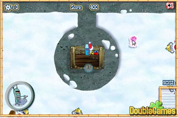 Wie schade, dass die Weihnachten nicht immer glücklich und listig ist! Der böse Plankton macht sein Übel auch zu den Festen! Spiele ein neues Spiel «SpongeBob SquarePants Merry Mayhem» und hilf Krab sein Rezept zu geheimen! Spiele eine Rolle von SpongeBob und steige das Dach hinauf! Kämpfe gegen die Robotern des Planktons! Schisse die mit den Schneebällen! Sie sollen in keinem Fall ins Restaurant kommen! Du kannst verschieden Bonusse bekommen, die Dein Arsenal verbessern können! Spiele das Spiel «SpongeBob SquarePants Merry Mayhem» online und mache Dir Spaß!