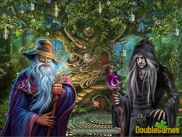 Nun, eins nach dem anderen. Vielleicht ist das Beeindruckendste in diesem Spiel seine Grafik, so sollten wir bei diesem Punkt einen Augenblick lang verweilen, um Ihnen eine Vorstellung davon zu vermitteln, wie großartig sie ist. Helle, bunte und sehr detaillierte Hintergründen, angenehm gezeichnete archetypische Spielfiguren, wie z.B. ein alter Magier mit einem langen weißen Bart oder ein böser Zauberer in dunkler Robe, animierte Äste, charmante kleine Feen und Irrlicht, das sich in üppigem Gras versteckt, ließen uns fühlen, als ob wir in ein wunderbares Märchenbuch geraten wären, wo das Gute immer das Böse besiegt.